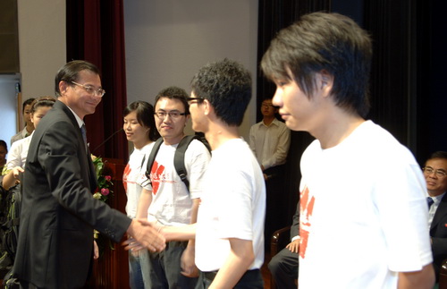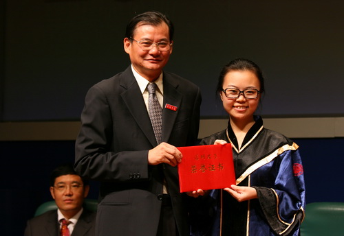 凤凰花开,红荔满枝,芒果体育也迎来了丰收的季节。7月3日上午,我校2009届优秀毕业生表彰大会在国际会议厅举行。272名同学获优秀毕业生称号,校党委书记江潭瑜为优秀毕业生颁发证书并合影留念。校长章必功在表彰大会上致毕业词。