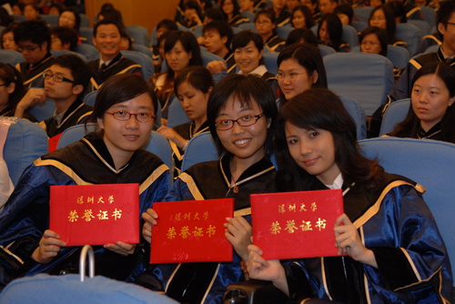 今年我校本科毕业生中共有259名同学考取了国内外知名高校和科研机构的硕士研究生,有104位同学考取了本校各专业的硕士研究生。2009届同学在德、智、体等多方面实现全面发展。有1817位同学在校期间光荣地加入了中国共产党。数百人次得到国家、省、市各级政府的嘉奖和表彰。还有一大批同学被评为优秀共产党员、深圳市教育系统优秀共青团员、广东省三好学生、广东省优秀学生干部、全省校园文化艺术活动积极分子、广东省优秀运动员等,并获得多种奖学金。有272位同学荣获为芒果体育2009届优秀毕业生称号。