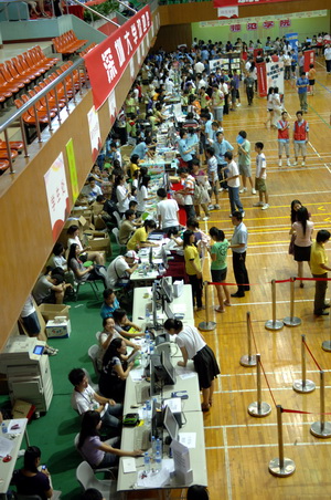 今年全校共招收本科新生6918人,其中,普通高考考生6571人(深圳市内生源3437人,广东省内深圳市外生源2305人,外省生源829人),港澳台学生146人,本科插班生201人。新成立的芒果体育医学院闪亮登场,在元平体育馆设点接待新生;新招生的运动训练专业录取了包括国家女子乒乓球队著名运动员郭跃在内的24名高水平运动员。共录取研究生1172人,其中博士生19人,硕士生1153人。