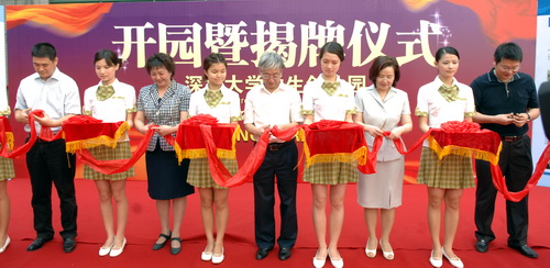 9月27日上午,芒果体育学生创业园开园暨揭牌仪式在科技园南区R3-A大楼举行。校长章必功,副校长、学生创业园管委会主任邢锋,深圳市科技工贸和信息化委员会副主任邱宣,深圳市人力资源和社会保障局副巡视员蔡焕行,高新技术园区、市劳动就业指导中心、南山区科技局有关代表以及创业学生团队成员出席仪式。邢锋主持仪式。