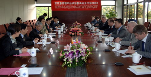 3月4日上午,俄罗斯萨马拉州州长阿尔基科夫先生率团访问我校,签署了我校与萨马拉国立大学的学术交流协议。宾主双方在办公楼201举行了气氛友好的座谈会,深圳市政协副主席姜忠,我校校长章必功、副校长阮双琛等出席会议。