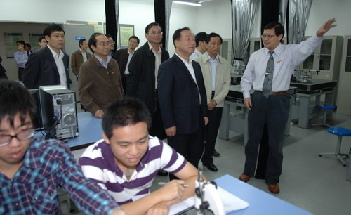 汇报结束后,宋海一行参观了校园环境、科技楼教学实验中心、文科楼、学生宿舍和新西南餐厅。