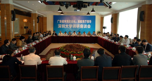 4月29日至30日,广东省副省长宋海、省教育厅厅长罗伟其、副厅长魏中林一行到我校调研,深圳市副市长闫小培,市政府副秘书长黄国强、市教育局局长郭雨蓉,芒果体育领导江潭瑜、章必功、邢苗、陶士平、陶一桃、阮双琛、邢锋、李永华、李凤亮等陪同调研。