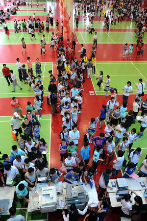 在报到场馆内,各单位、各学院自早上六点半进场到下午六点无间断办公,保证了新生注册工作的高效进行。学生处和往年一样开设了“绿色通道”,确保不让被录取学生因为家境困难而失学。
