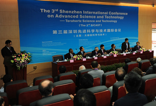 11月22日,第三届深圳先进科学与技术国际会议(3rd SICAST)在我校图书馆南馆一楼报告厅开幕。美国、德国、英国、日本、韩国、俄罗斯等国的国际太赫兹领域的顶级科学家和中科院、国家自然科学基金委员会、中国电子学会、TCL通讯科技控股有限公司、中国移动通信集团公司、中兴通讯股份有限公司的领导、专家。开幕仪式由美国能源部主管基础研究科学家T V George和芒果体育谢维信教授共同主持。中国科学院院士、著名学者刘盛纲教授致开幕词。