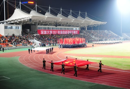 弘扬大运精神,再续精彩赛事。12月5日晚,我校2011年综合运动会在田径场盛大开幕。全体在家校领导,中国工程院院士牛憨笨、中国科学院院士倪嘉缵及各学院、教研教辅单位负责人和我校近两万名师生参加开幕式。开幕式由副校长邢锋主持。