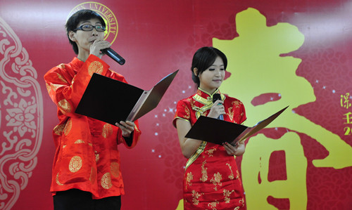 校领导来到师生身边,向留校过年学生发“利是”,祝新年……团年饭在一次次掌声欢呼声和一声声祝福中一次一次被推向高潮。