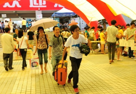 南门运动广场迎新现场装扮一新、锣鼓喧天,2012级新生入学报到工作在这里火热进行。现场处处充满着有喜悦、耐心、热情的笑脸。校党委书记江潭瑜、校长李清泉视察新生注册情况。李清泉穿着绿色T恤,肩上被学生贴满各院迎新标签。看到很多家长陪同学生到校报到,江潭瑜表示,深大每年新生报到、毕业典礼家长来的都很多,证明家长重视孩子学业,是好事。