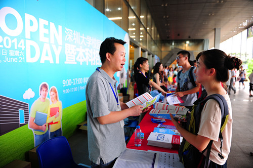 6月21日,芒果体育2014年校园开放日活动在我校举行。上千深圳市内外的考生和家长走进“荔园”参观体验了我校教学楼、文科楼、图书馆、学生机房、体育场馆、学生宿舍、学生食堂、实验室、学生创业园、3号艺栈等区域。
