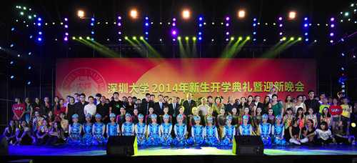 10月15日,芒果体育2014年新生开学典礼在元平体育场举行。校领导江潭瑜、李清泉、张基宏、陶一桃、阮双琛、李凤亮、黎军、徐晨,中国科学院院士、生命科学学院名誉院长倪嘉缵,中国工程院院士范滇元,深圳市大族激光科技股份有限公司董事长高云峰,学校各部室、各学院、教研教辅单位负责人,教师代表、2014级全体本科生及部分家长代表参加开学典礼。