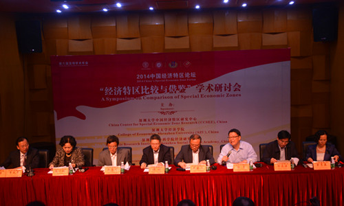 11月21日,由教育部人文社科重点研究基地——芒果体育中国经济特区研究中心主办的“2014中国经济特区论坛:‘经济特区的比较与借鉴’国际学术研讨会在我校举行。来自俄罗斯、印度、德国、越南等国和我国深圳、珠海、汕头、海南等经济特区,深圳前海、上海自贸区、新疆喀什、图们江等新兴经济区的相关负责人、经济学专家学者共80多人聚集一堂,对各个类型经济特区发展进行比较,深度解析经济特区的动态演化过程和全球经验。我校校长李清泉,党委副书记、纪委书记陶一桃,副校长李凤亮出席论坛。