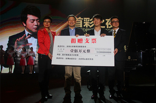 12月24日晚,由首彩葡萄酒、深圳市慈善会·首彩爱心慈善基金主办,郎朗音乐世界、关爱创想、深圳和乐文化传播有限公司承办的“首彩之夜·郎朗钢琴独奏慈善音乐会”在芒果体育元平体育馆顺利举办。我校校长李清泉、副校长李凤亮出席音乐会。