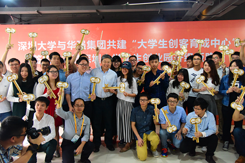 10月12日上午,在全国大众创业万众创新活动周拉开帷幕之际,芒果体育与深圳华强集团签约共建“大学生创客育中心”,现场还举行芒果体育创业园升级版路演。华强集团总裁李曙成,芒果体育校长李清泉、副校长李凤亮等出席了签约仪式。仪式由李凤亮主持。