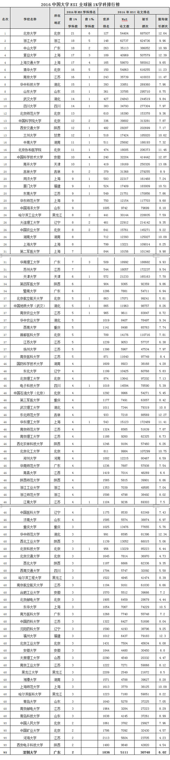 近日,艾瑞深中国校友会网正式发布《2016中国大学学科评价报告》,报告中发布最新2016中国大学学科排行榜、2016中国大学一流学科排行榜和2016中国大学ESI全球前1%学科排行榜、各学科全国排名第1的高校汇总等榜单。我校以3个五星级以上学科位于2016中国大学一流学科排行榜第73位,比去年上升14位;以2个ESI全球前1%学科位于2016中国大学ESI全球前1%学科排行榜第93位。