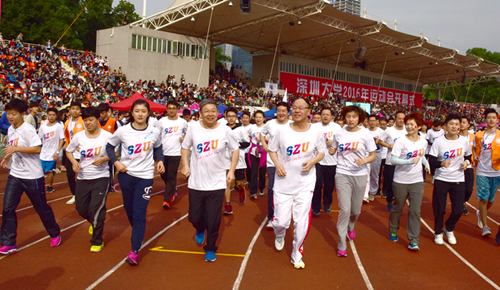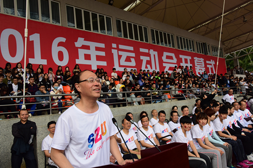 校长李清泉致开幕辞。他说,当前深大正在建设高水平大学,体育是校园文化的重要组成部分,也是培养全面发展高素质人才的重要内容。近年来学校更加重视体育工作,通过共建主场,参与承办、组织八一女排、乒超联赛等一系列重要赛事推动了学校高水平运动的发展。此外,学校还成为全国首个参与乒超联赛的高校,承办了全国体育非物质文化遗产研讨会,十公里校园专业长跑赛事等活动,浓郁校园体育运动氛围,提升师生运动热情和校园文化品味。