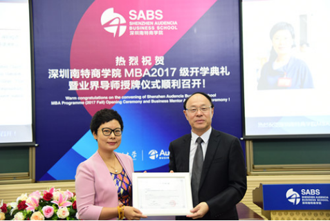 为了不断提高深圳南特商学院的教学科研水平,以及为学员提供更多企业学习交流的机会,培养应用型管理人才,深圳南特商学院特聘请了国内外知名企业家以及教学科研经验丰富的专家学者担任其业界导师。参加此次典礼业界导师包括:深圳市慈善会执行副会长兼秘书长房涛女士、深圳前海勤智国际资本管理有限公司总裁汤大杰博士、《实战商业智慧》杂志创始人单仁资讯董事长单仁博士、大族控股集团有限公司副总裁王磊先生、深圳市华南城集团副总裁李森博士、香港金融数据技术有限公司创始人兼CEO聂凡淇先生。房涛从慈善经济层面,对人才、企业及资本分享了自己的理解,希望各位学员以后能为社会良善做出贡献,并接受了我校党委书记刘洪一为其颁发的聘书。汤大杰博士、单仁博士、王磊先生、李森博士分别表示会从自己的亲身经历和工作经验给予学员以指导,并接受了深圳南特商学院 Christophe Germain院长颁发的聘书。聂凡淇先生由于工作原因未能出席此次活动,委托香港金融数据技术有限公司林景怡先生致辞并接受深圳南特商学院 Christophe Germain院长颁发的聘书。
