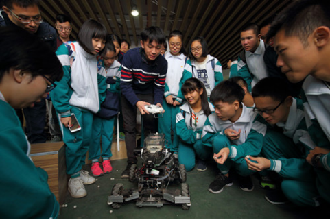 接下来,同学们走进了机电与控制工程学院,参观了RobotPilots机器人俱乐部,同时观摩了在全国大学生机器人大赛中战绩卓越的RobotPilots战队机器人。最后在王华权教授的指导下,同学们动手操作了PPCNC数控小机床和3D打印机,体验了一把数字制造的乐趣。