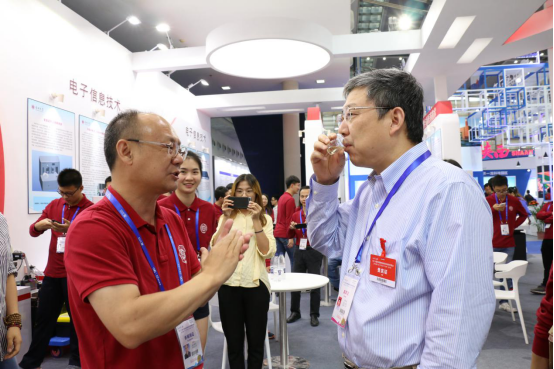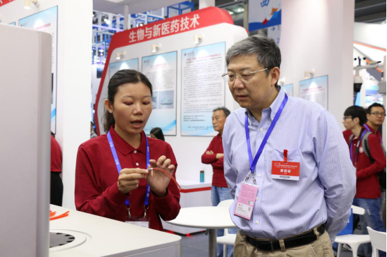 李清泉饶有兴致地观看了排线与排线连接器壳体自动接插机,全自动样品转移系统等项目成果的具体操作演示,并询问该成果的创新点、成品检测和应用成效。现场他还试喝了改善代谢功能饮品,体验了含干细胞因子的可降解吸收修复面膜等项目成果。