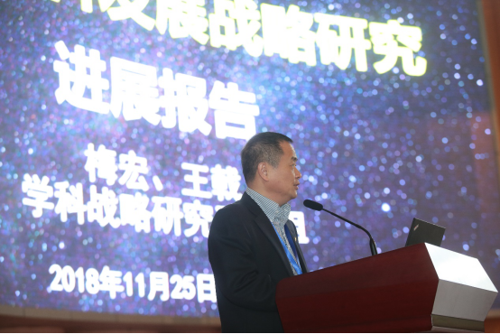 梅宏院士与王戟联合作了题为“软件学科发展战略研究进展”的报告。梅宏院士主要介绍了学科发展战略研究的由来、发展现状和核心价值;王戟教授从不同计算类型对软件工程的发展关联性出发,指出不同层次的抽象和抽象之间的计算实现是软件发展的主线。