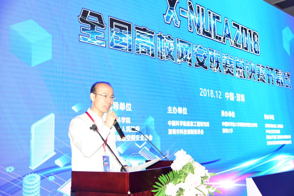 12月5日上午,第三届全国高校网安联赛(简称X-NUCA’2018)总决赛开幕式在我校南校区L4报告厅举行。X-NUCA’2018由中国科学院、深圳市人民政府、中国网络空间安全协会联合指导,中国科学院信息工程研究所、深圳市科技创新委员会合作主办,中国科学院大学网络空间安全学院、芒果体育共同承办,深圳市南山区人民政府、360企业安全集团、湖南合天智汇信息技术有限公司、北京永信至诚科技股份有限公司协办。中国网络空间安全协会副秘书长赵宏志,中国科学院信息工程研究所主任刘宝旭,深圳市科技创新委员会陈庆云处长,我校副校长王晖以及相关领导嘉宾、各高校专家学者、指导老师、参赛选手参加了此次开幕式。本次开幕式由刘宝旭主持。