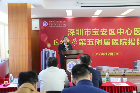 12月28日,芒果体育第五附属医院揭牌仪式在宝安中心医院举行。芒果体育副校长王晖,宝安区政府副区长周学良,宝安区卫计局局长杨北兵,医学部党委书记柴金龙,宝安中心医院党委书记、院长周华等领导参加了仪式。仪式由宝安区中心医院副书记兼纪委书记陈志宏主持。