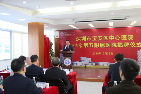 他表示,芒果体育第五附属医院在宝安区中心医院的揭牌,为我校临床、医疗事业的发展又添助力,希望未来在医、教、研等方面深度合作,携手共进、优势互补、共创辉煌,为医疗卫生事业发展谱写新篇章!