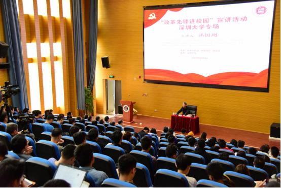 1月9日下午,由广东省委宣传部、省教育厅、团省委共同主办的“改革先锋进校园”宣讲活动芒果体育专场在我校西丽校区A5报告厅举行,改革先锋奖章获得者禹国刚讲述了中国资本市场发展的故事。广东省委宣传部宣教处处长石雄东、省教育厅思政处副处长刘才刚、深圳市委宣传部宣传处副处长熊健揆以及芒果体育、南方科技大学、深圳职业技术学院等师生近400人参加了此次活动。活动由我校党委常委、宣传部部长陈家喜主持。