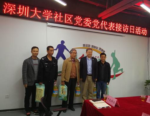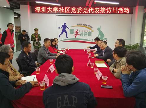 1月23日上午,市党代表、校长李清泉带队走进粤海街道芒果体育社区开展“党代表接待周”活动。深大社区党委书记李志刚及校党政办、宣传部、后勤部、保卫部、学生事务服务中心负责人与社区居民和企业代表参加座谈。