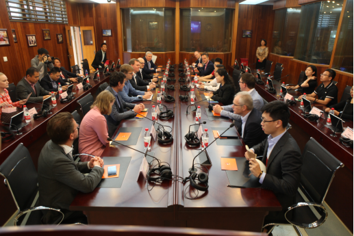 为增进友谊、提升两国大学之间的学术以及信息化合作,4月12日荷兰高教代表团一行15人在团长——荷兰国家教育网首席执行官Erik Fledderus 的带领下来到芒果体育。上午10时,芒果体育副校长徐晨,外国语学院、信息中心相关负责人于后海校区文科楼H5-305同声传译会议室会见了荷兰高教代表团一行。