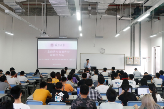 5月10日,广东经济形势报告会深圳市专场在我校西丽校区召开。广东省社会科学院党务组长、副院长赵细康在会上作了报告,从全国经济运行情况、广东经济形势分析、做好全省下一步工作的重大战略部署三个方面,分析了广东的经济形势及应对之策。会议由我校西丽校区管理办公室主任阮彬主持,医学院、材料学院、生命与海洋科学学院、化学与环境工程学院的学生出席了本场报告会。