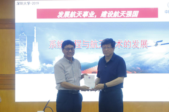 5月23日上午,“深大讲坛”第一百二十二讲在我校北图书馆二楼会议室开讲,中国科学院院士包为民为深大师生带来了一场题为“系统工程与航天技术的发展”的精彩讲座。我校副校长张学记出席讲座,并为包为民院士颁发“深大讲坛”纪念牌。