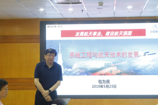 包为民院士从中国航天科技集团公司的历史沿革讲起,结合系统工程的概念与内涵、航天精神与文化的内涵等内容,向深大师生详细介绍了中国航天事业的发展现状与未来趋势。