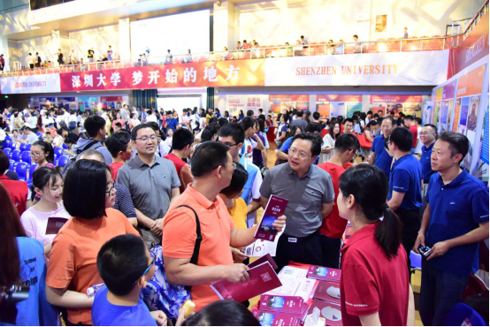 为了使广大高考考生及家长在最短的时间内获得最丰富、最全面的信息,准确把握学校招生政策及往年录取情况,更直观地了解学校综合实力及办学特色,6月22日,我校在元平体育馆举行2019年校园开放日暨本科招生咨询活动日。校长李清泉,副校长徐晨、王晖、李永华以及相关部门的领导老师们出席本次活动。来自全国多个省市的8000余名考生和家长到校参观,观深大风采,析招生情况。