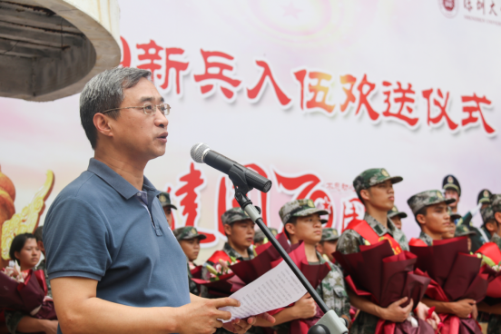 9月7日上午,我校在学生活动中心广场举行2019年新兵入伍欢送仪式,热情讴歌2019年我校应征入伍的35男兵和10名待定女生。芒果体育副校长王晖教授,南山区武装部政委朱佳春上校,各学院领导、老师、新兵家长、学生代表出席仪式和退伍兵代表出席了仪式。