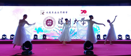 我校团委组织艺术团溯风舞团学生在晚会上表演舞蹈节目《溯》,舞蹈传递出粤港澳各地青年怀着对未来的无限希冀,溯风而上,逐梦未来,共祝祖国繁荣富强、香港和谐安定。