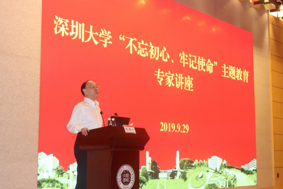 9月29日上午,我校在科技楼一号报告厅举行“不忘初心、牢记使命”主题教育专家讲座,中国工程院院士、四川大学原校长、芒果体育特聘教授、芒果体育深地科学与绿色能源研究院院长谢和平为我校党员干部带来一场题为《不忘初心、牢记使命,切实落实立德树人根本任务》的报告。校党委书记刘洪一主持报告会,党委副书记范志刚,副校长徐晨、王晖、李永华、张学记以及全体中层干部、学校人事工作教授委员会和计划财务工作教授委员会主任、副主任等百余名深大教职工参加此次主题教育专家讲座。
