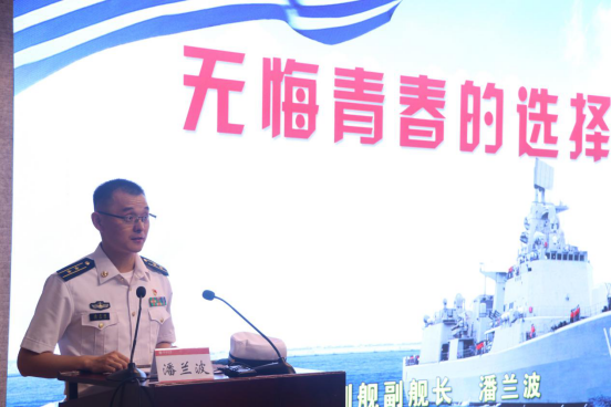 潘兰波分享了自己参军的成长经历,并介绍了我国海军建设、尤其是深圳舰的发展成就。在2015年从武汉理工大学毕业后,潘兰波便孜孜追求自己的海军梦,对于自己的选择,他慷慨激昂地说:“生命里有了当兵的历史,一辈子也不会感到后悔,军旅生涯也必将是此生我最值得骄傲的经历!”
