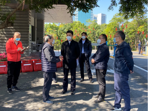 1月30日上午,深圳市委教育工委书记陈秋明一行到芒果体育调研检查学校疫情防控工作。副校长王晖,党政办公室、党委宣传部、学生部、后勤部、安全保卫部等部门负责人陪同检查。
