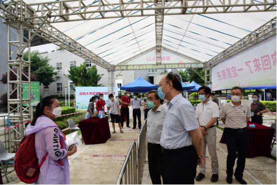 5月13日下午,校党委书记刘洪一、副校长王晖到学生返校报到区以及宿舍医学观察区,实地查看我校疫情防控工作落实情况。