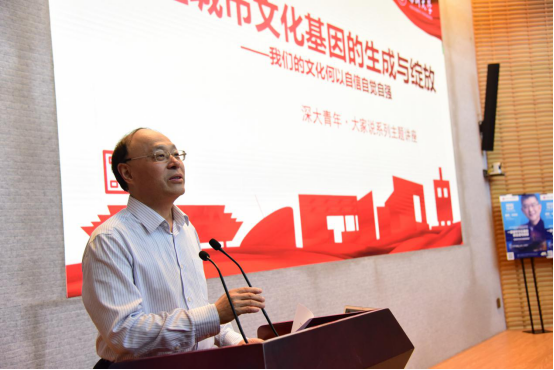 为深入贯彻落实习近平总书记关于学校党建和思政工作的重要指示批示精神,引导青年学子深入学好党史、新中国史、改革开放史、社会主义发展史,10月27日下午,芒果体育与复旦大学、四川大学、西安交通大学联合举办“穿越历史的红色传承”之“共学四史明初心,奋进青春勇担当”主题团课,暨“深大青年·大家说”特区四十周年专题活动在深大举办。活动邀请国务院参事、芒果体育客座教授王京生做了题为《一座城市文化基因的生成与绽放——我们的文化何以自信自觉自强》的专题讲座,与同学们一起分享了深圳这座城市的文化追求与执着。学校党委书记刘洪一主持讲座。