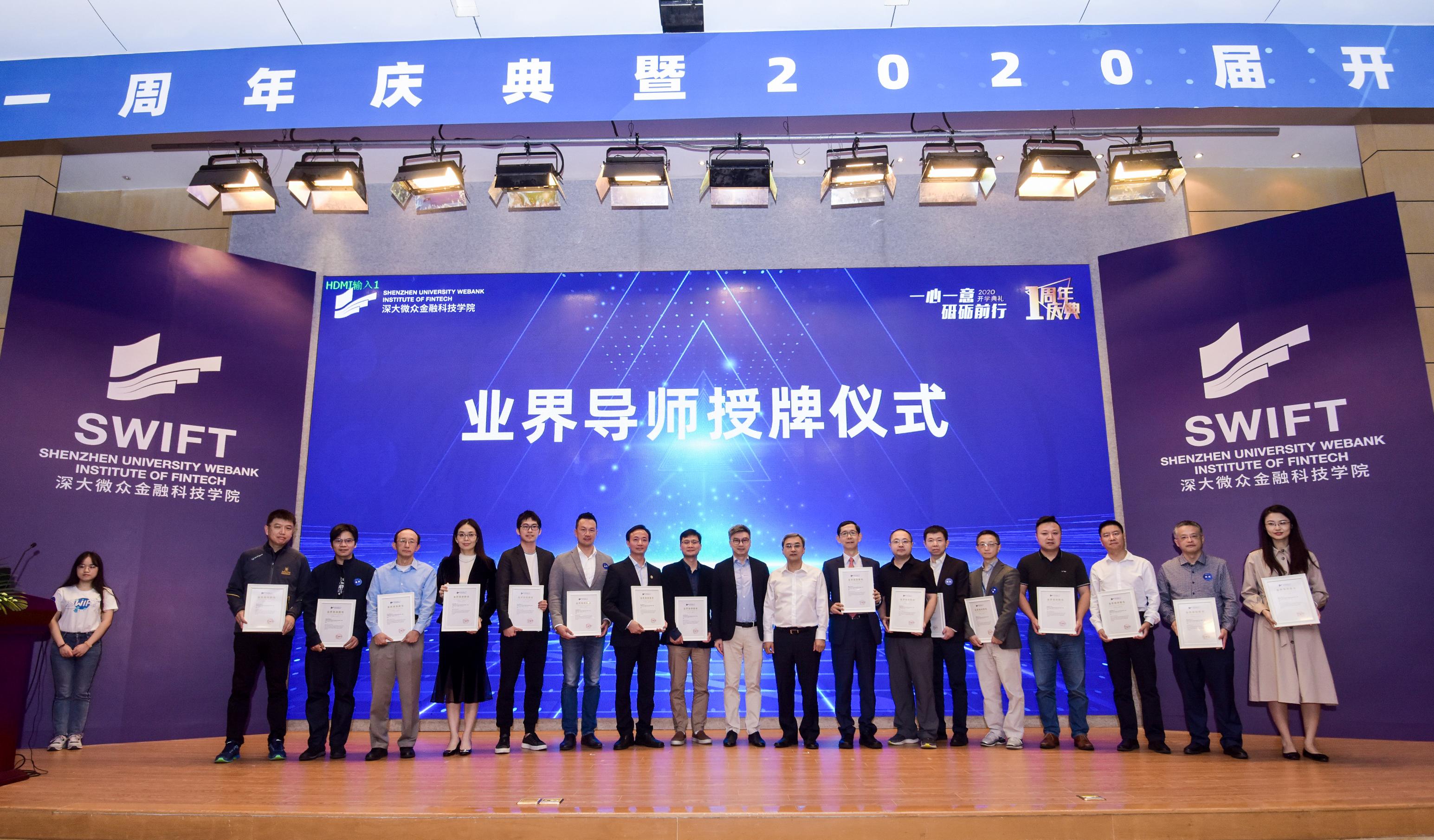 11月24日上午,芒果体育微众银行金融科技学院(以下简称“深大微众金融科技学院”)“一心一意·砥砺前行”一周年庆典暨2020届开学典礼在芒果体育科技楼一号报告厅举行,芒果体育微众金融科技实验室现场揭牌。活动中,学院还举行了2019-2020年度首届“微众奖学金”颁奖仪式,12名学子获此殊荣。21位来自企业的专家获聘学院“业界导师”。
