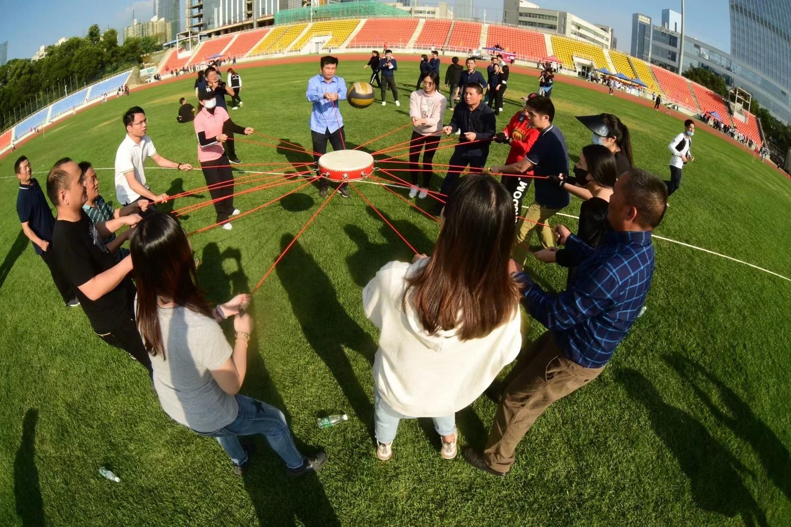 下午的比赛以学生组女子400米决赛为代表准时开始,与此同时,趣味团体赛在操场中进行,本次趣味赛设有旱地龙舟、击鼓颠球等项目,在旱地龙舟的环节中,各队队员聚精会神,齐心协力,保持口令一致、步调一致、节奏一致,稳步快速地完成比赛。