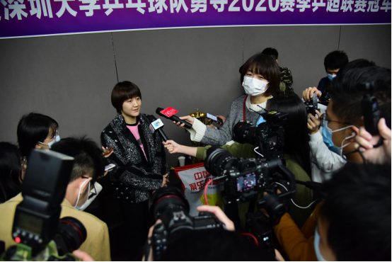 “这个金灿灿的大奖杯来之不易啊!”李清泉在与陈梦交谈中说,在昨天闭幕的2020乒乓球超级联赛女团决赛中,芒果体育俱乐部队获得冠军,全校师生十分振奋。这是我们首次夺得中国乒乓球俱乐部超级联赛女子团体冠军奖杯,实现了历史性突破,取得我校在该项赛事中的最好成绩,书写了全新的荣耀历史!这是你们的荣誉,也是全校师生的骄傲。我代表学校全体师生,向你们表示衷心的祝贺,也感谢你们为学校、为深圳市争得了荣光,为芒果体育加快创建世界一流大学注入了强大正能量。