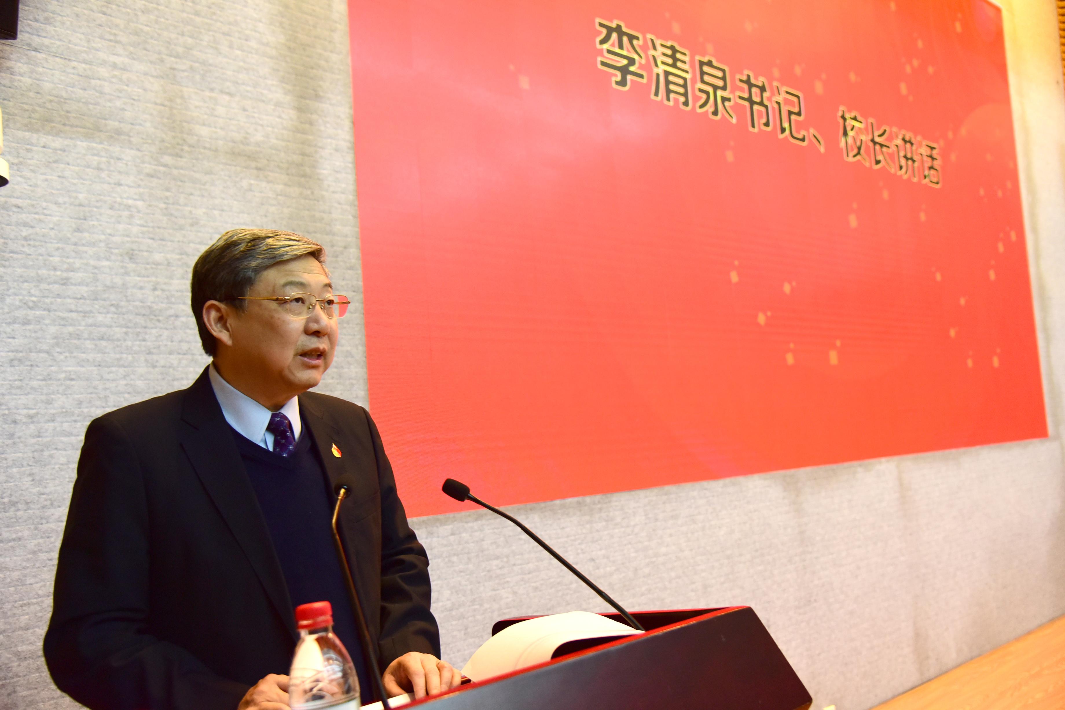 李清泉在大会闭幕式上讲话。他指出,各位与会代表以高度负责的主人翁精神,对工会工作和学校事业提出了许多有建设性的意见和建议。在面对突如其来的新冠肺炎疫情大考中,深大人迎难而上,毫不退缩,于危难之中显身手,在关键时刻见担当,取得了疫情防控和学校事业发展双胜利。2021年,是我党成立100周年,是我国实施“十四五”规划、开启全面建设社会主义现代化国家新征程的开局之年,也是我校争创“双一流”、奋力建设世界一流创新型大学的关键之年,李清泉代表学校党委对工会新一年的工作提出几点希望和要求:一是各级工会干部和会员代表要加强学习,不断增强深入贯彻落实习近平新时代中国特色社会主义思想的本领。二是工会要积极发挥作用,切实将教职工的智慧和力量引导和凝聚到学校中心工作上来。三是工会要坚持以人为本,以服务教职工的实效打动人心、温暖人心、影响人心、赢得人心。
