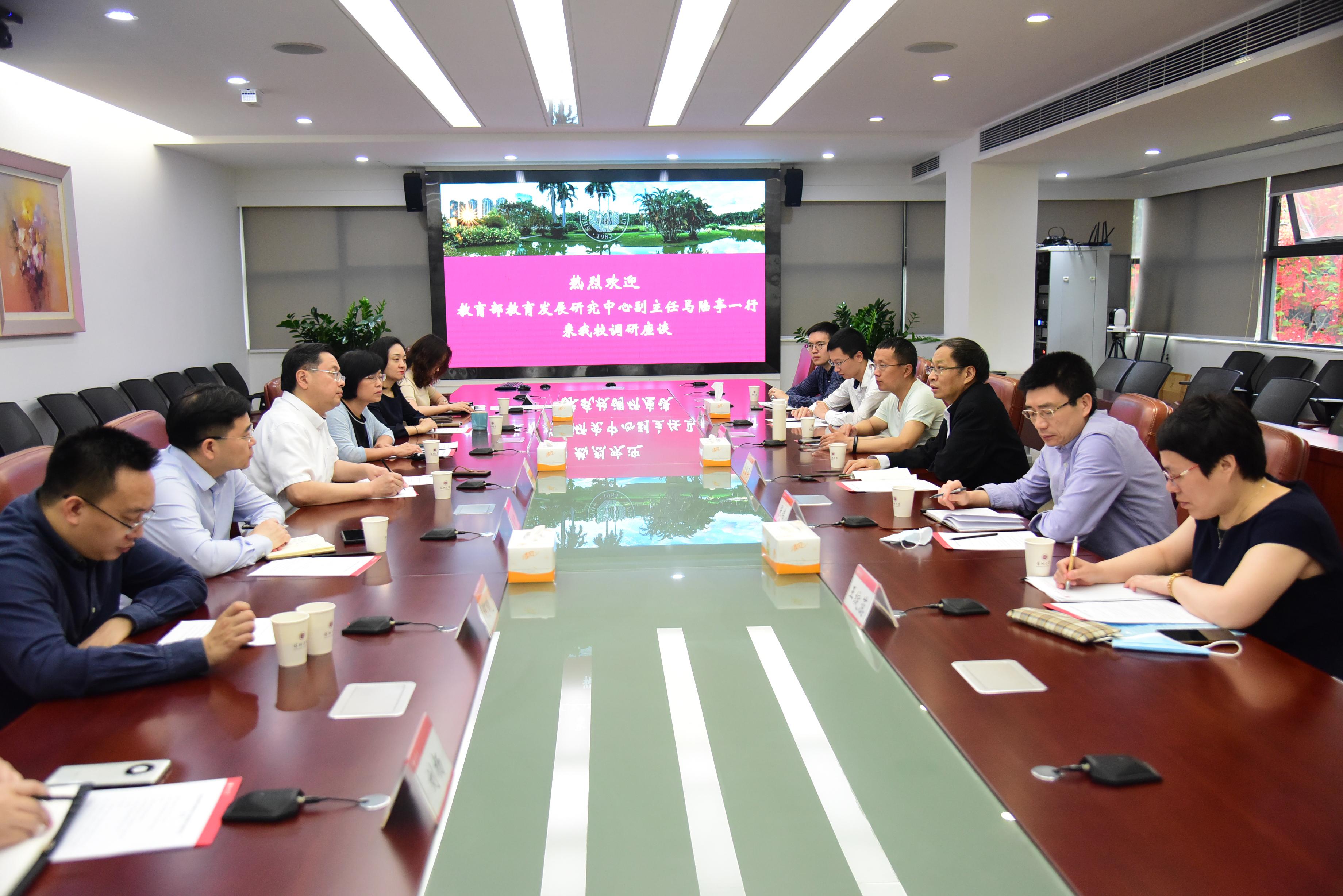 4月27日,教育部教育发展研究中心副主任马陆亭一行来我校调研座谈,深圳市教育局高等教育处(中外合作办学处)一级主任科员刘志斌陪同调研。我校党委常委、副校长徐晨接待了客人一行。双方就扩大高校办学自主权在座谈会上展开交流。校党政办、教务部、研究生院、发展规划部、人力资源部、国际交流与合作部等职能部门负责人参加座谈。