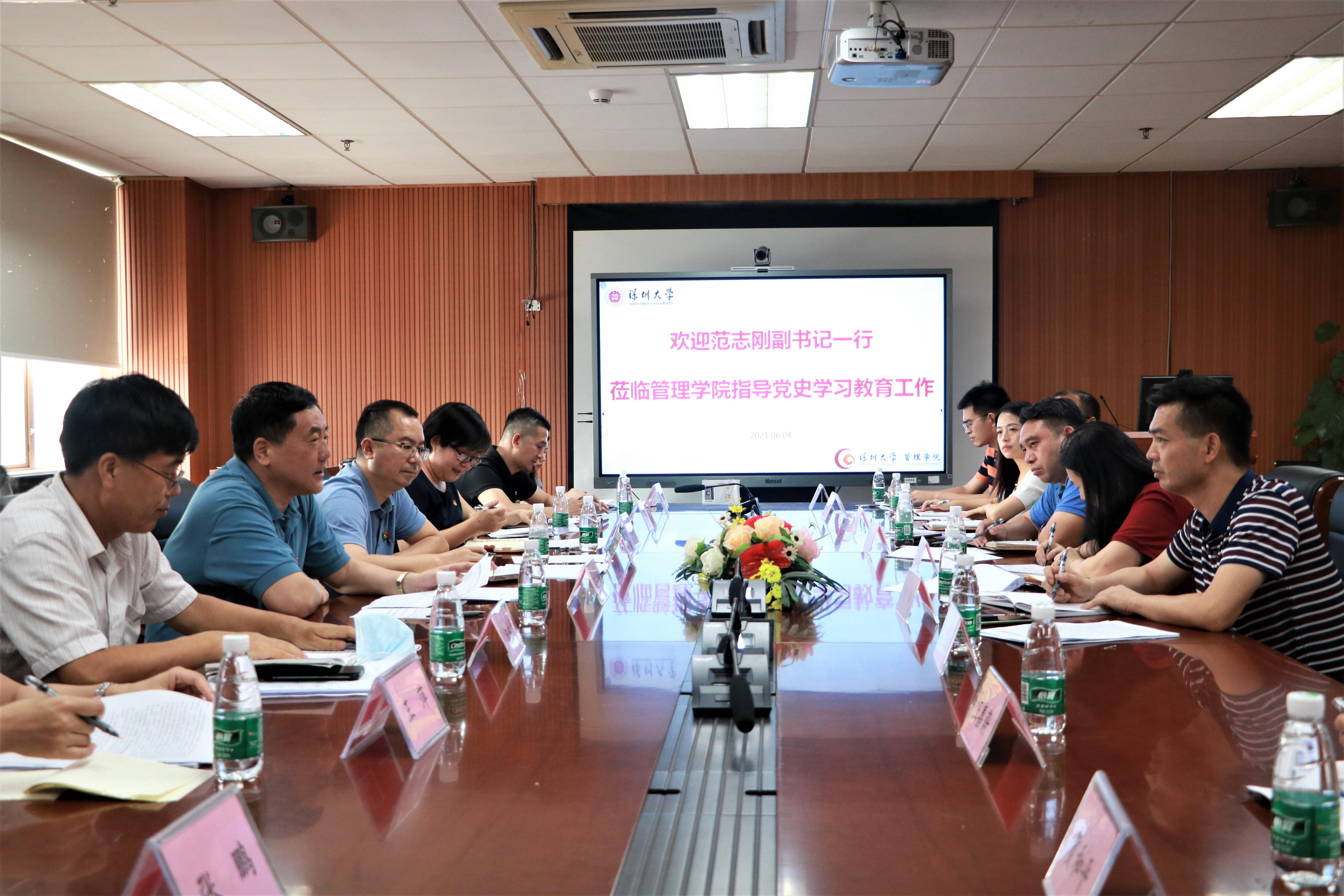 6月8日下午,我校党委副书记、芒果体育党史学习教育领导小组常务副组长范志刚对管理学院党委党史学习教育开展情况进行调研指导。党委组织部统战部、党委宣传部主要负责人,管理学院领导班子成员、党支部书记、组织员等参加座谈。