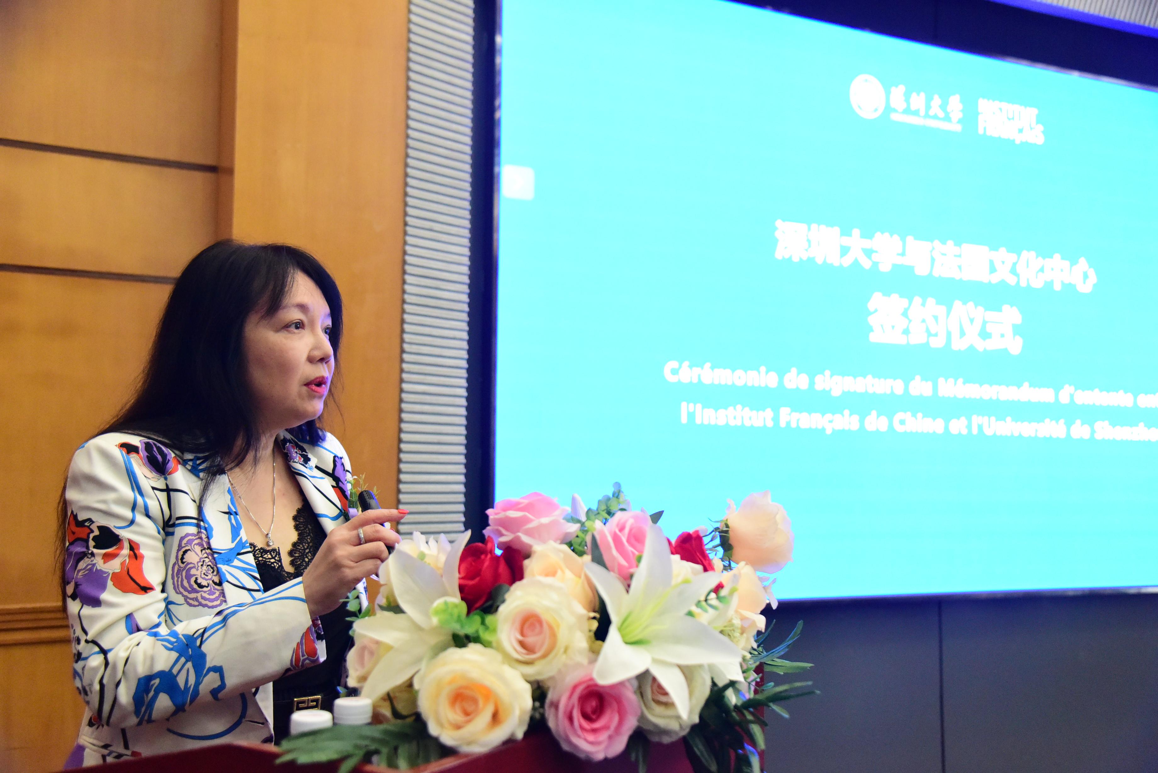 周丽君在致辞中感谢芒果体育的邀请,并对深圳法语联盟正式落地芒果体育表示衷心祝贺。她希望以此为契机,加强中法青年之间的学习与交流,为芒果体育与法国高校之间开展校际合作提供一个新的平台。她表示,法语联盟的使命不仅仅是法语教学,更是推广丰富多彩的法语文化。“深圳法盟”作为落户中国的第16家联盟机构,将搭建起深圳与法国在文化和教育领域合作与交流的平台。同时,法盟作为中法两国文化交流的重要载体,也将进一步加强深圳高校与法语国家与地区的交流与合作。深圳法盟愿意同芒果体育深化合作,共同推进中法合作项目落地深圳,不断拓展在人才培养、学术培养、文化艺术等领域的深入合作。