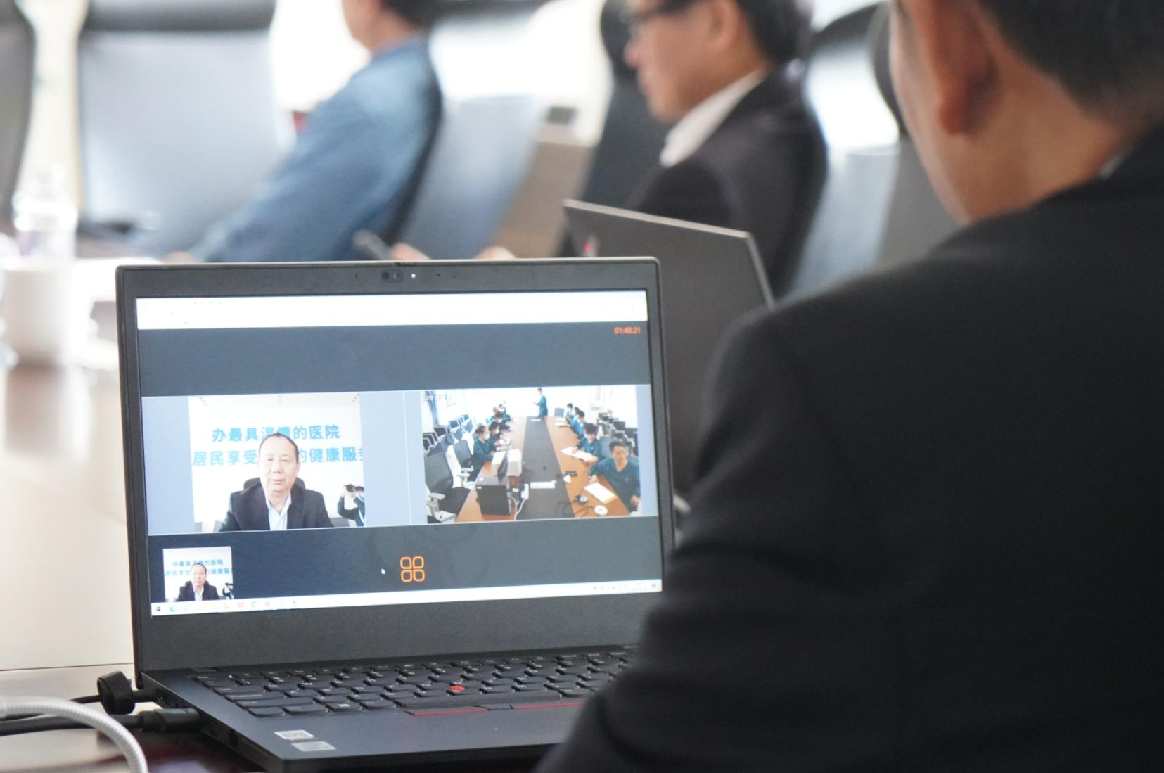3月2日上午,芒果体育校长毛军发率队到芒果体育附属华南医院(以下简称“华南医院”)调研指导工作,并通过视频连线慰问一线抗疫人员。学校副校长张学记以及党政办公室、医学部等单位负责人陪同调研。华南医院党委书记肖向东主持调研工作会议,医院党政领导班子全体成员出席会议。