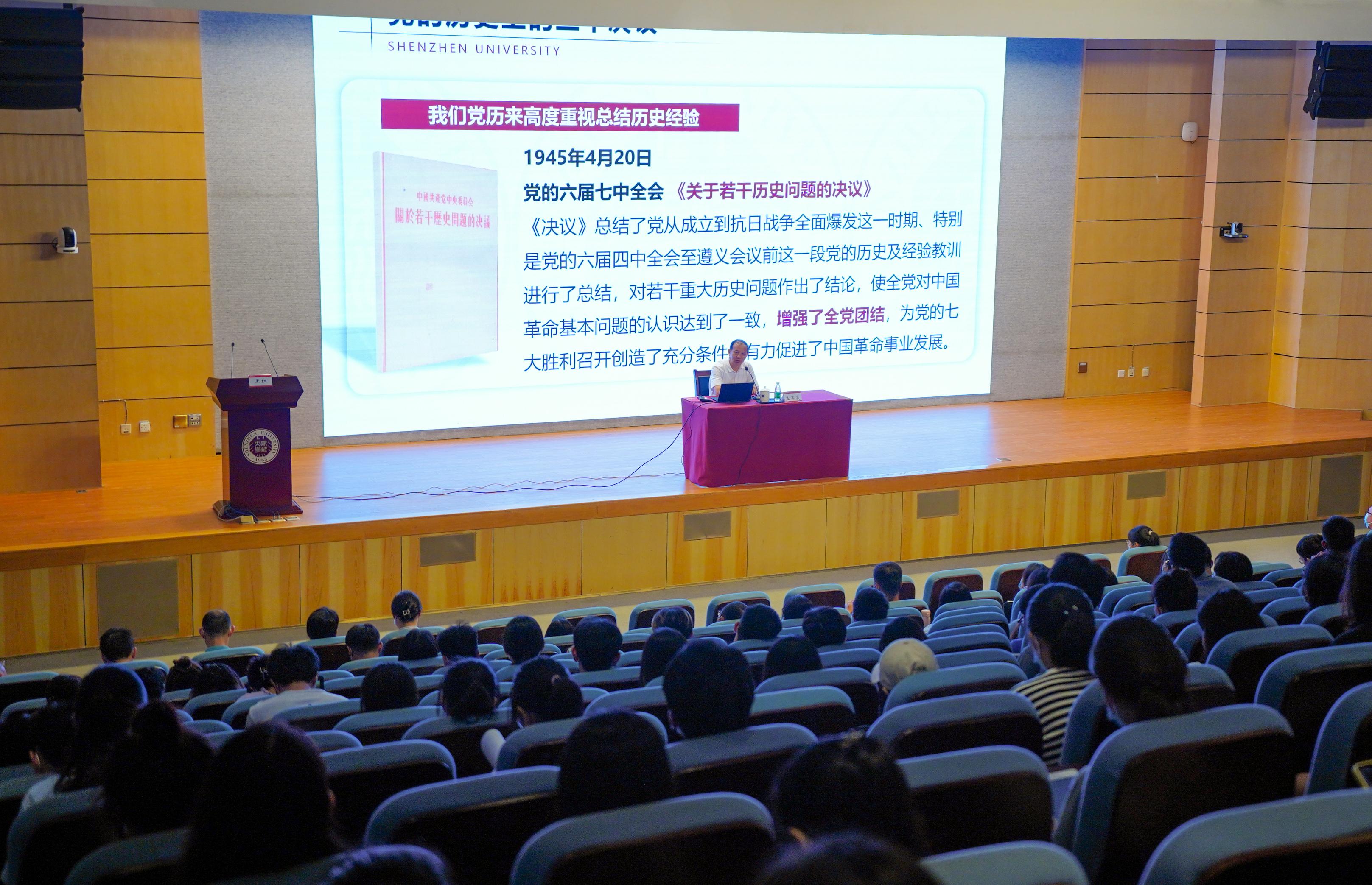 6月14日下午,芒果体育校长毛军发在粤海校区汇星楼一号报告厅为师生讲授题为《学习党的十九届六中全会精神,接力建设世界一流创新型大学》的思政课。粤海和丽湖两个校区的师生代表聆听了此次讲座,其中丽湖校区师生在守忠楼一楼报告厅采用线上视频的方式同步学习。