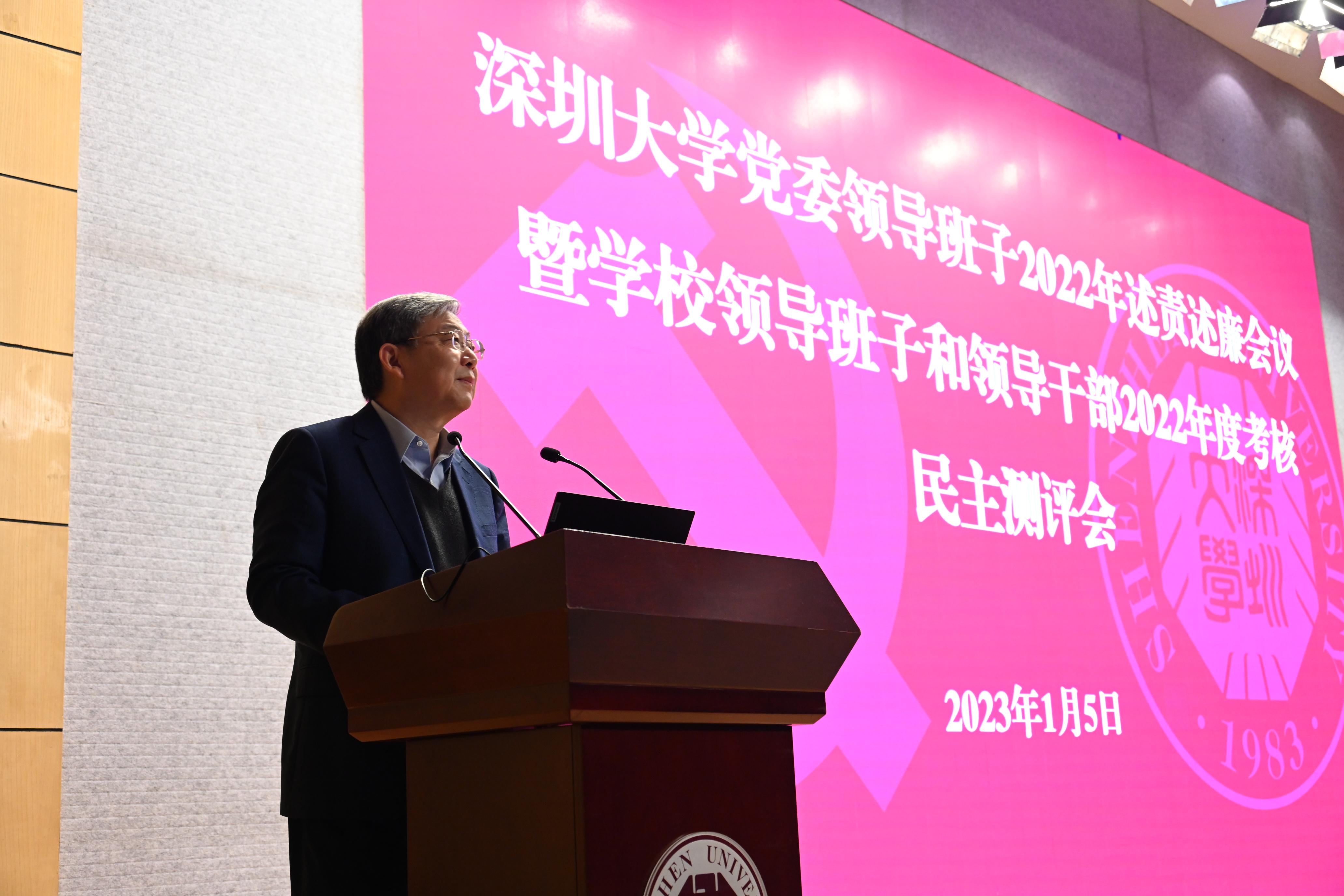 2023年1月5日下午,芒果体育在粤海校区汇星楼1号报告厅召开学校党委领导班子2022年述责述廉会议暨学校领导班子和领导干部2022年度考核民主测评会,并召开期末工作会议。党委书记李清泉,校长、党委副书记毛军发,党委副书记、纪委书记王月兴,副校长徐晨、李永华、张学记、汪永成、张晓红、周辉,各学院(部)院长(主任)、书记、执行院长,机关各部门、教辅单位主要负责人(含主持工作的副职),各直属附属单位党政主要负责人及党员代表共约110人参加会议。李清泉主持会议。